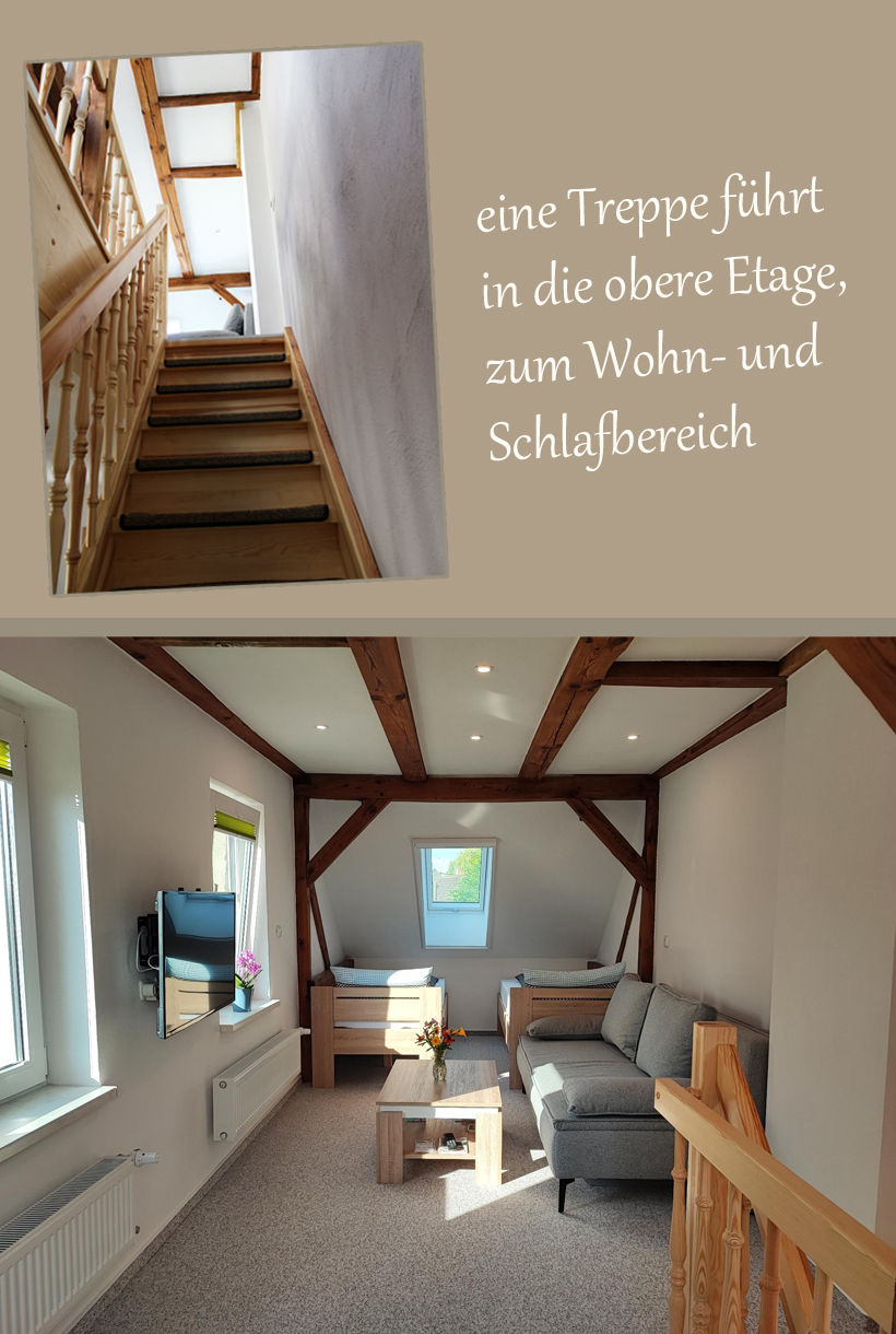 (Die Ferienwohnung ist auf 2 Etagen verteilt. Die Eigentümer wohnen im Nebenhaus.)